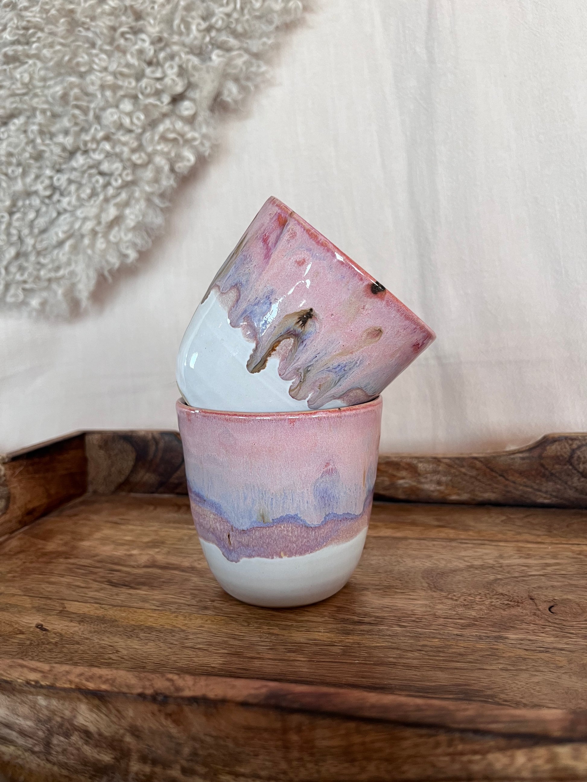Drejad kopp i stengodslera.
