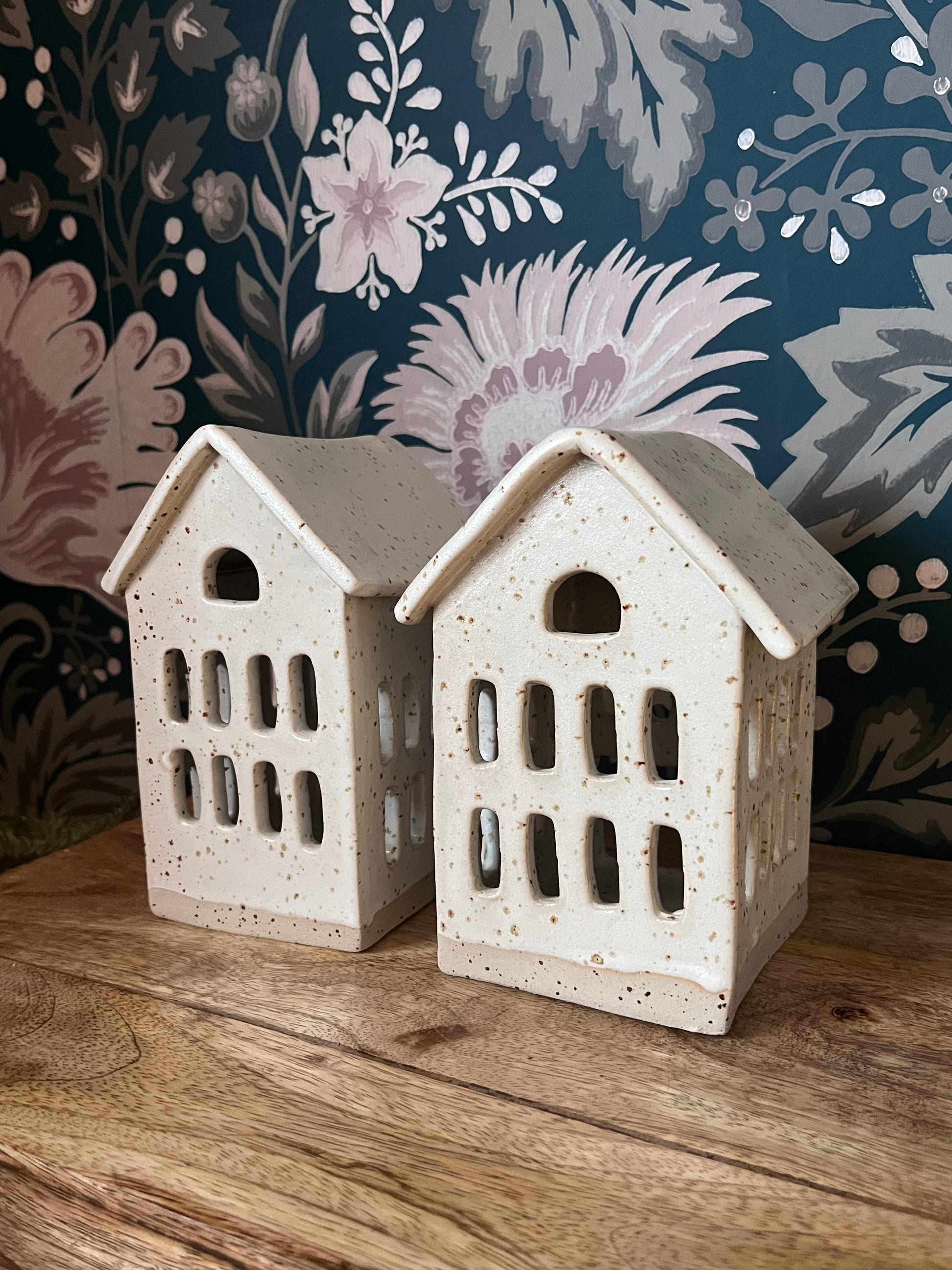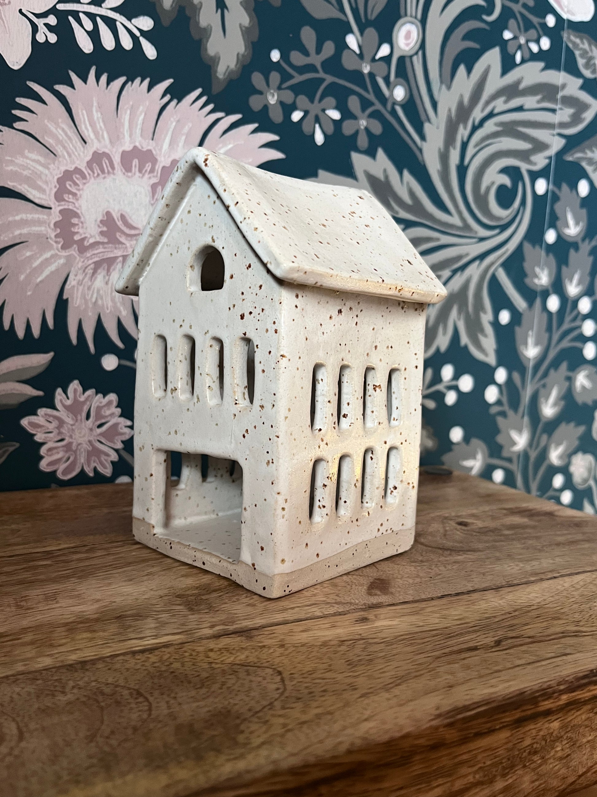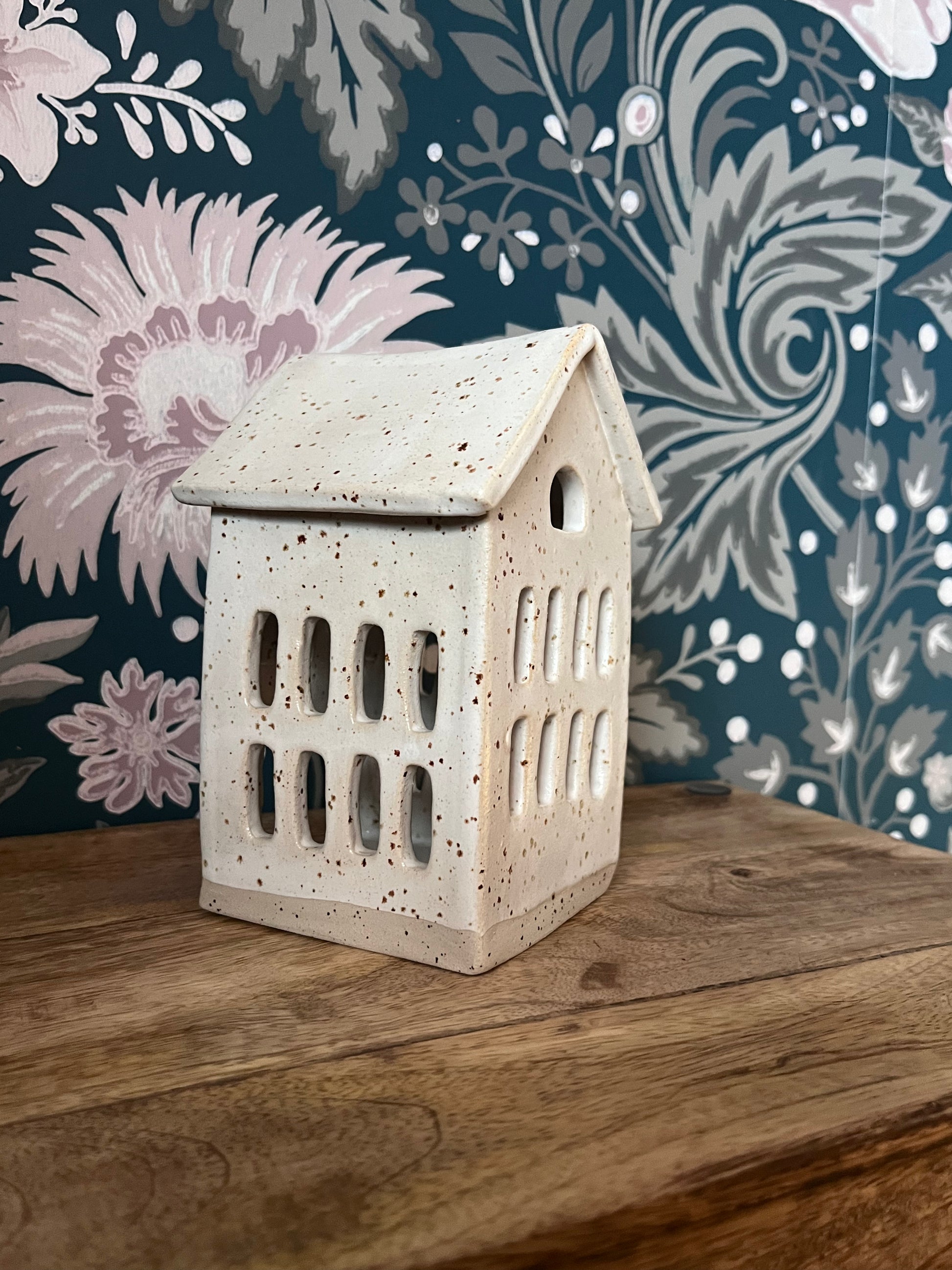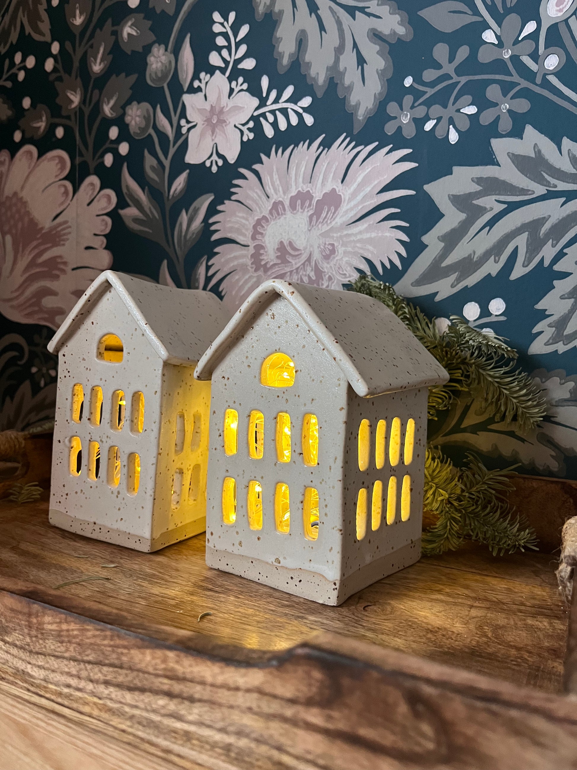Huset tål värme från levande ljus men blir varmt. Rekommender användning av batteridrivna ljus eller ljusslingor.