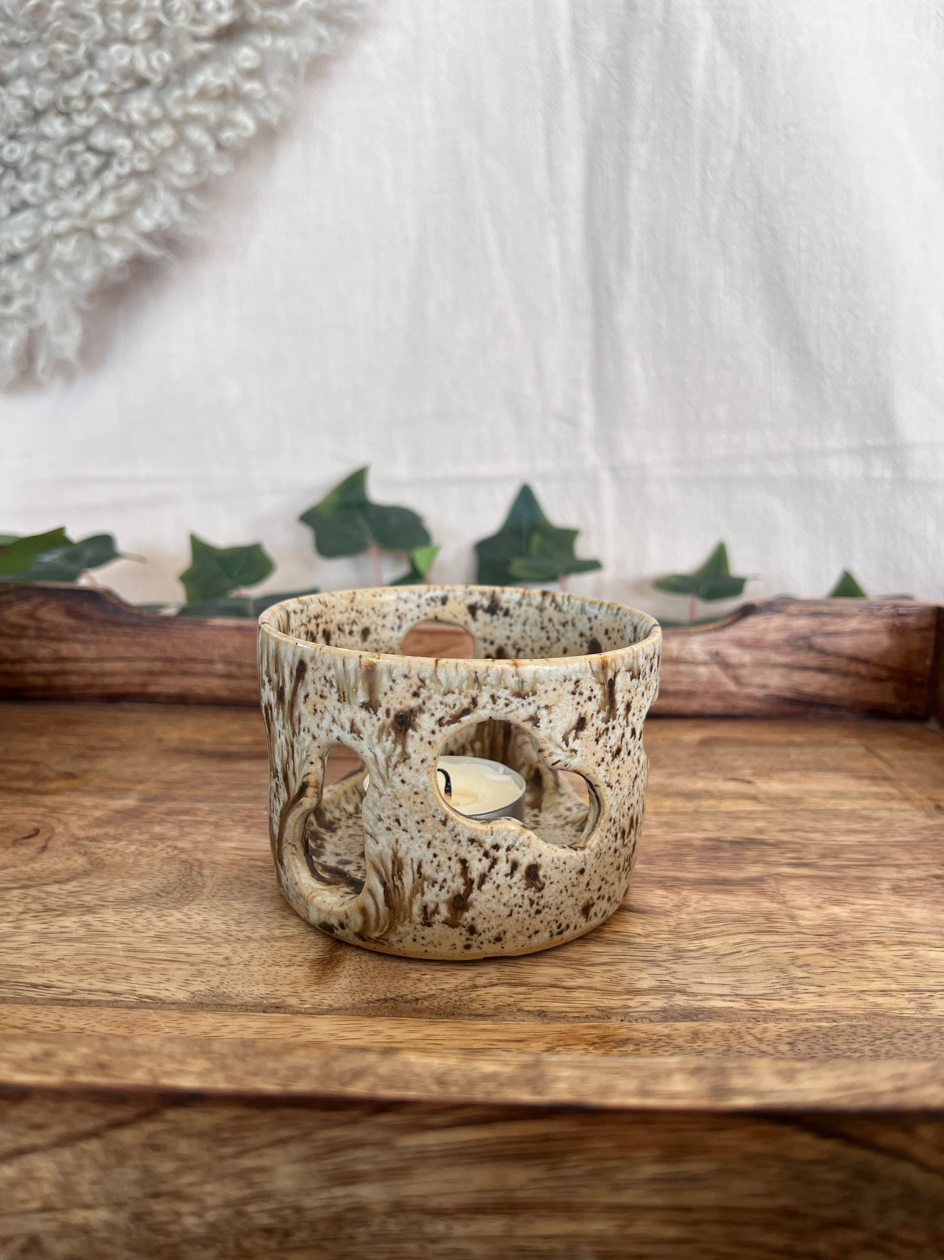 Drejad och utskuren i stengodslera.