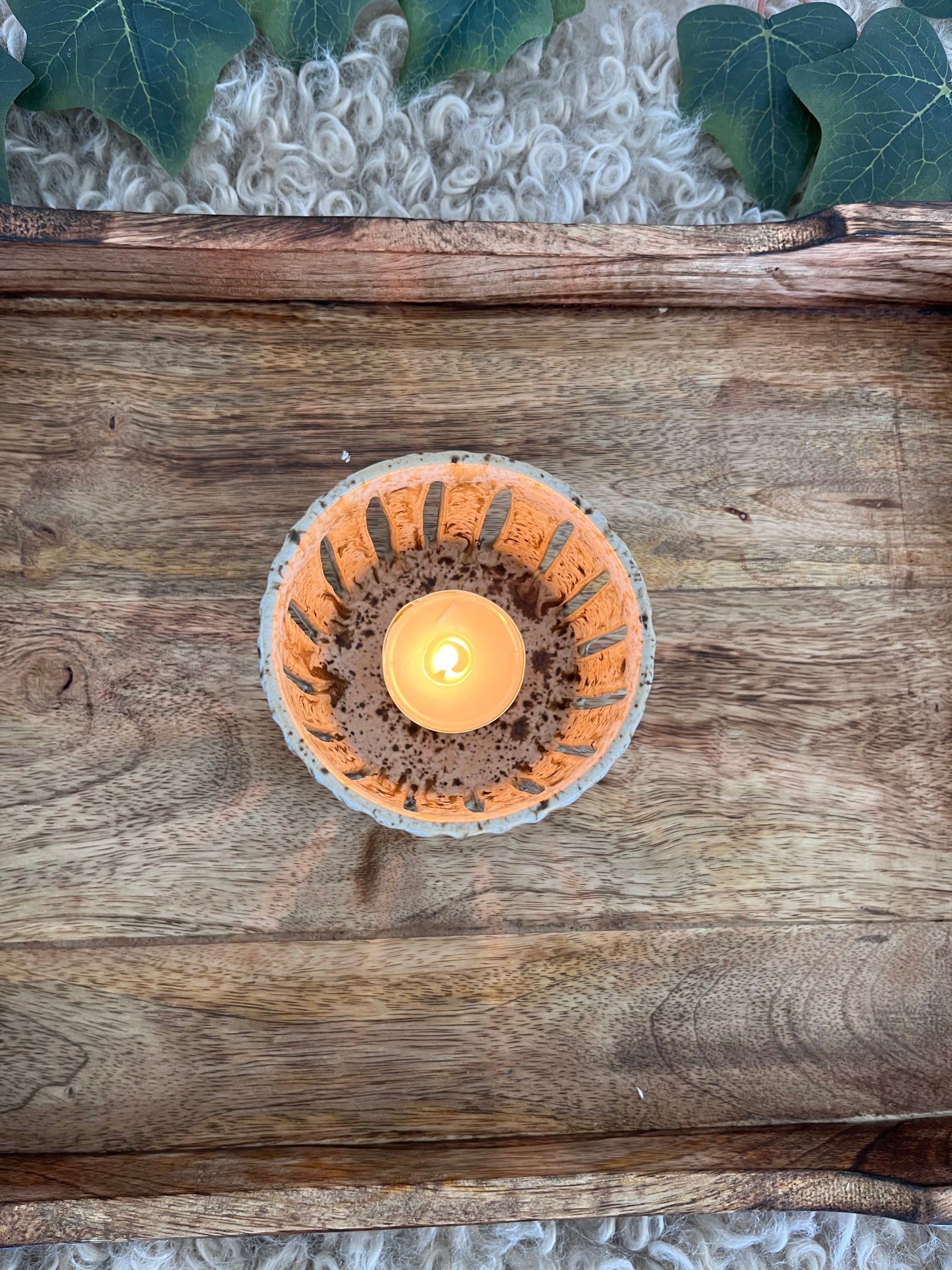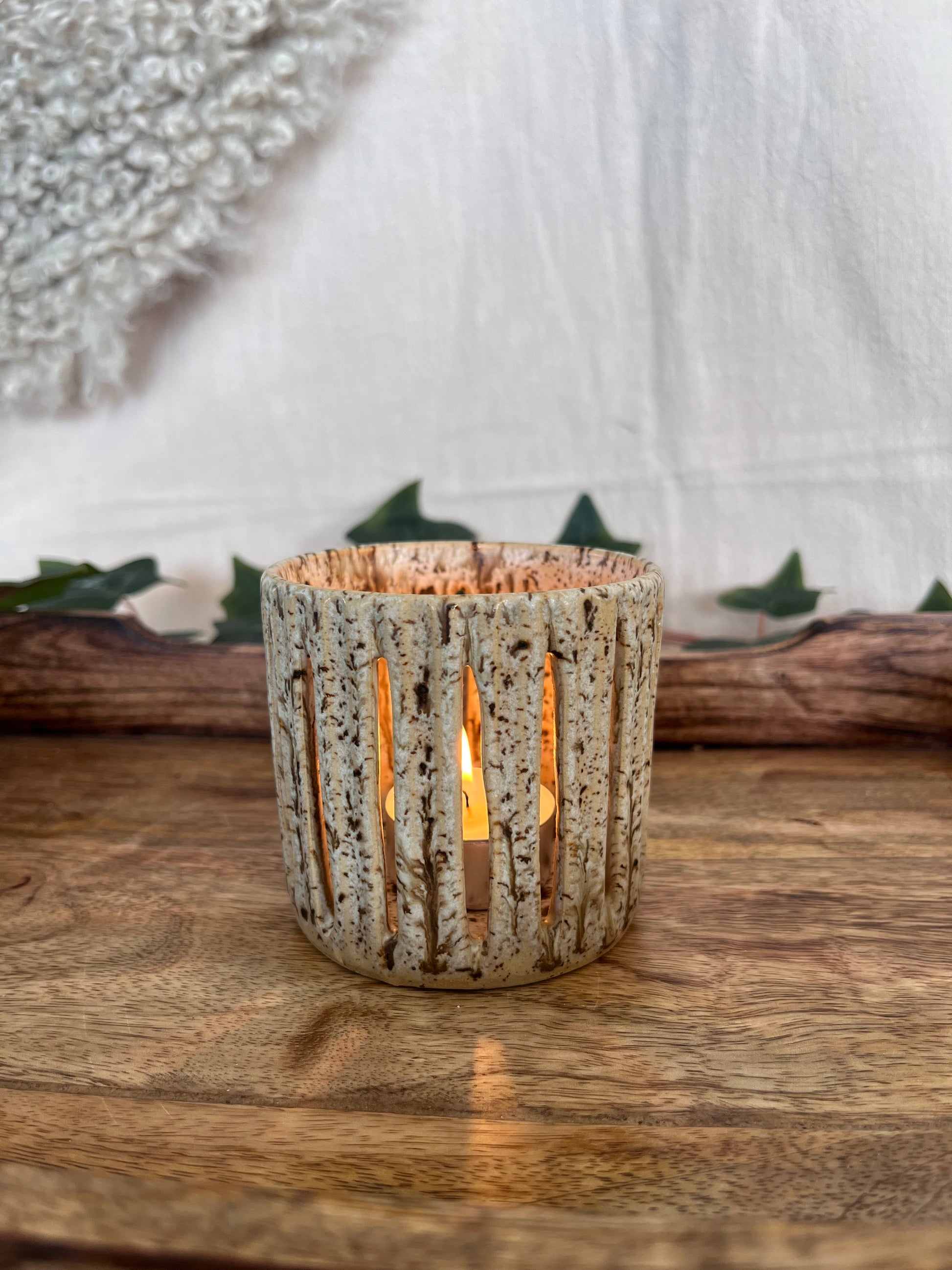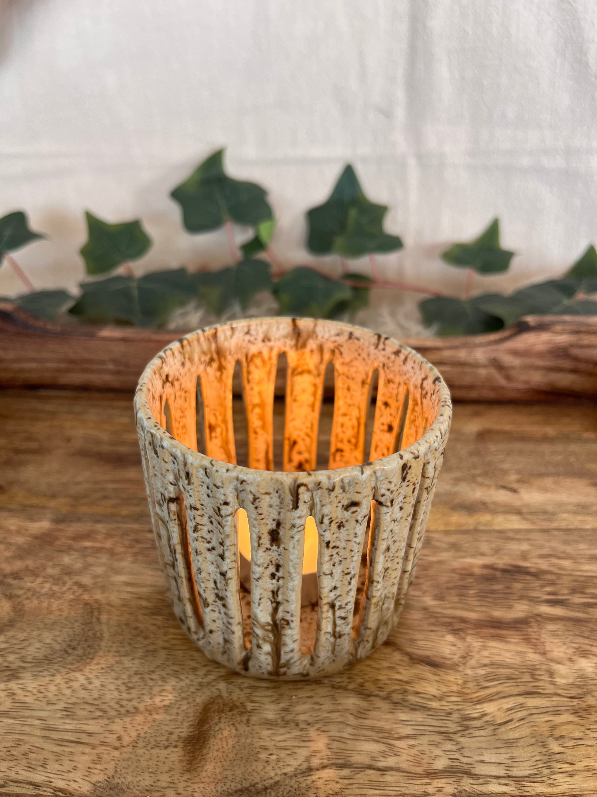 Drejad och karvad i stengodslera.