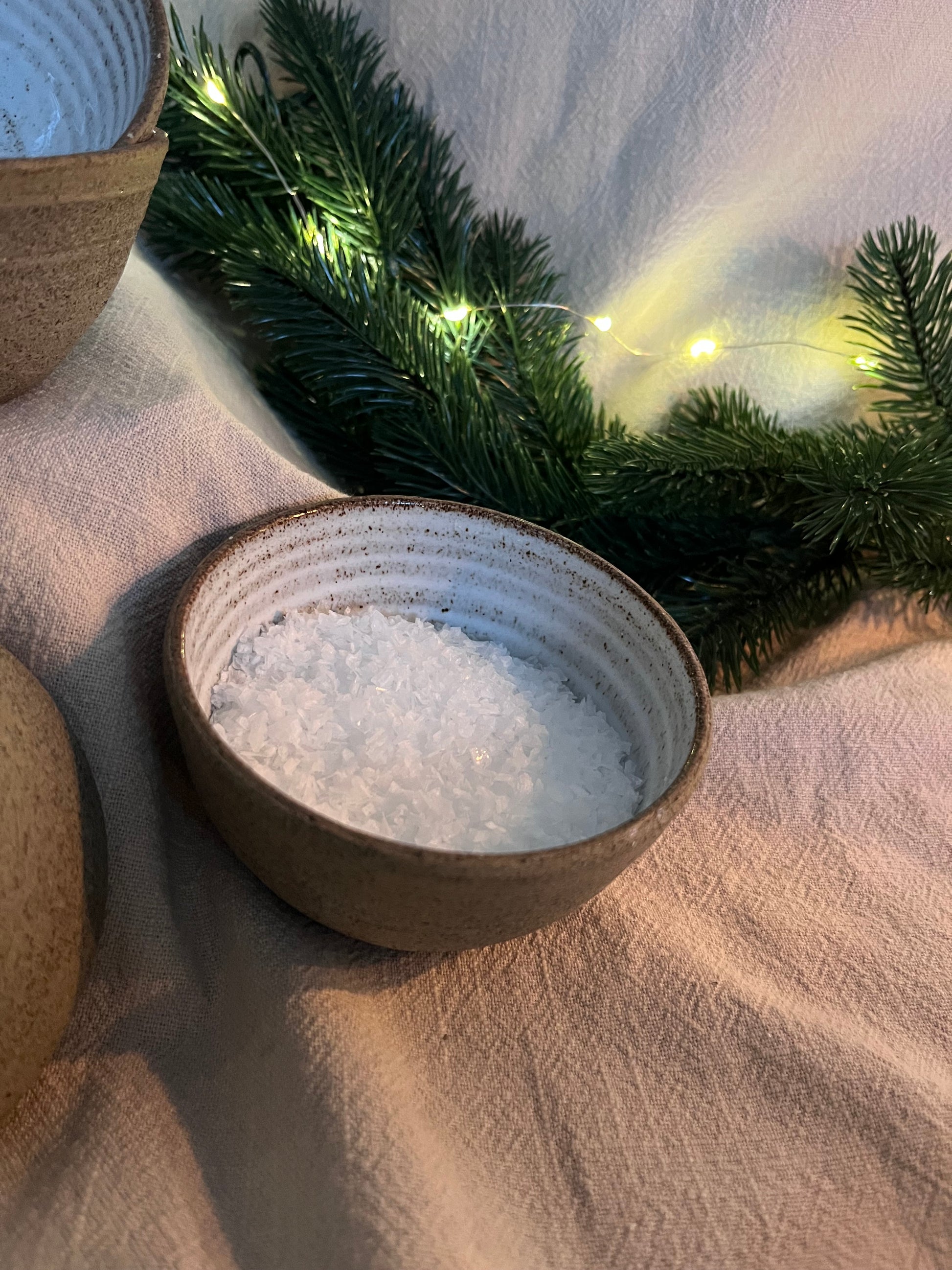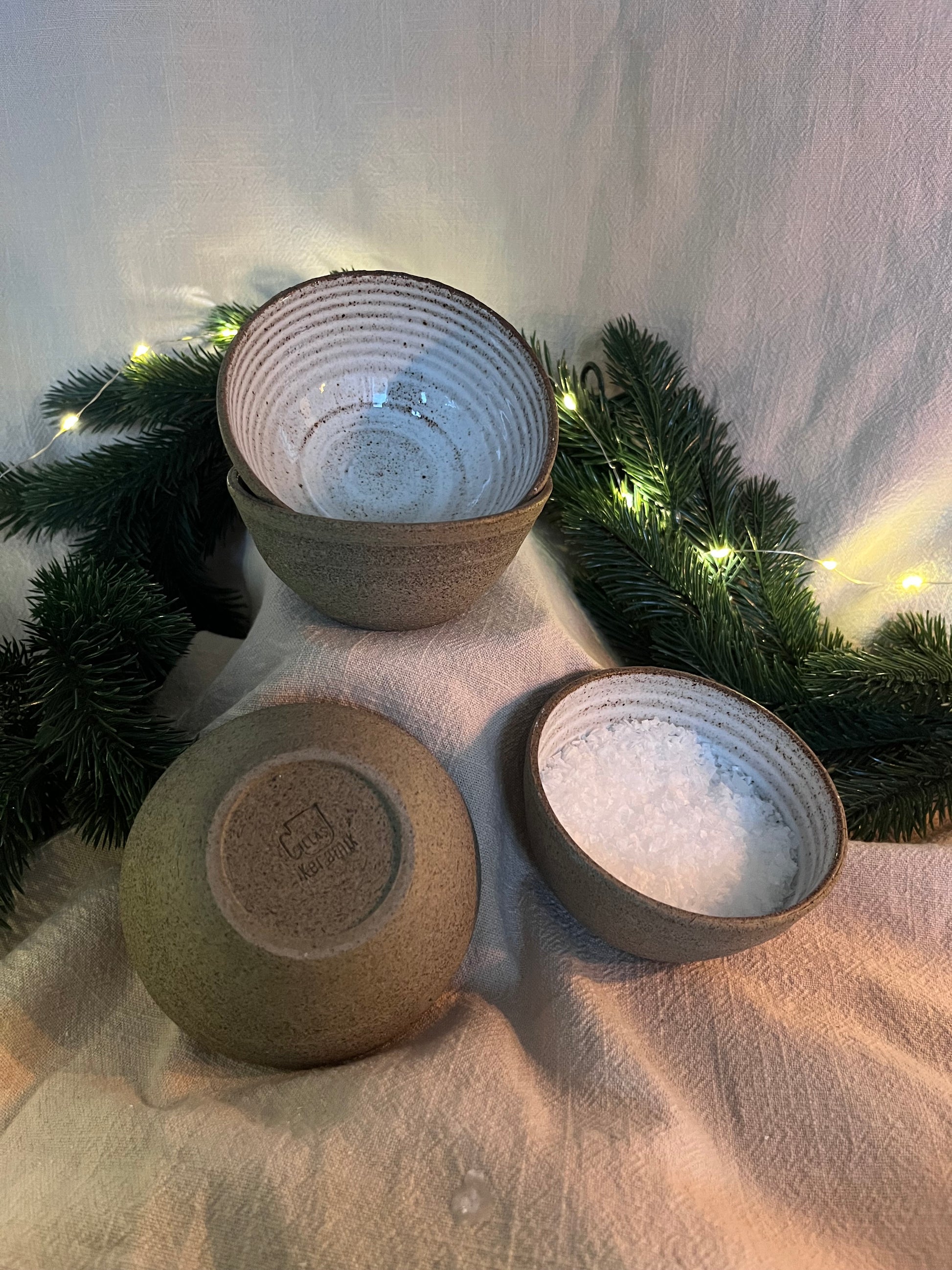 Drejad skål i stengodslera. Glaserad i en vit blank glasyr på insidan.