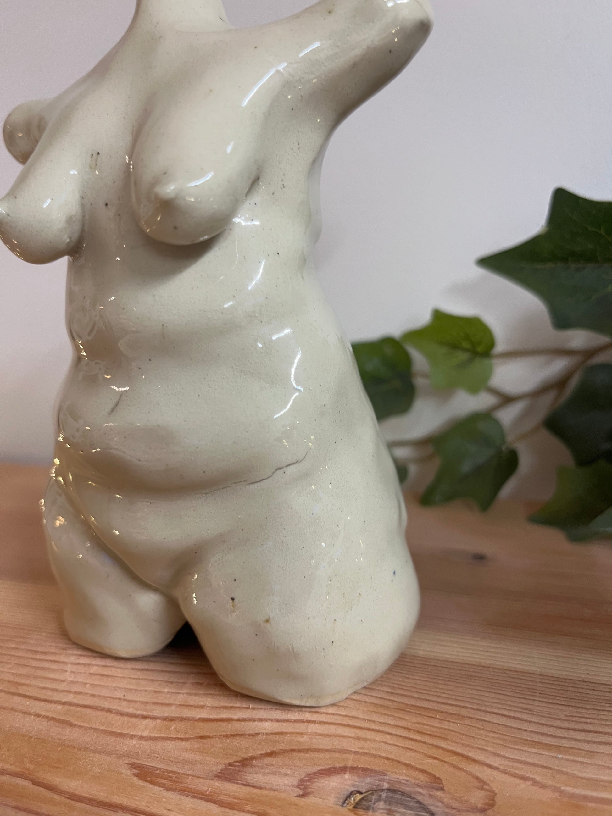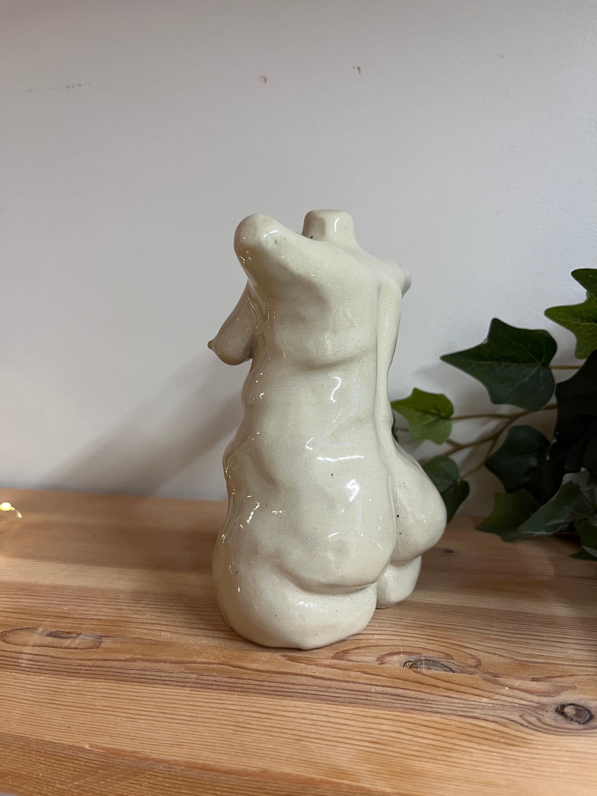 Handbyggd skulptur i stengodslera. Glaserad i transparent glasyr som låter leran tala för sig.